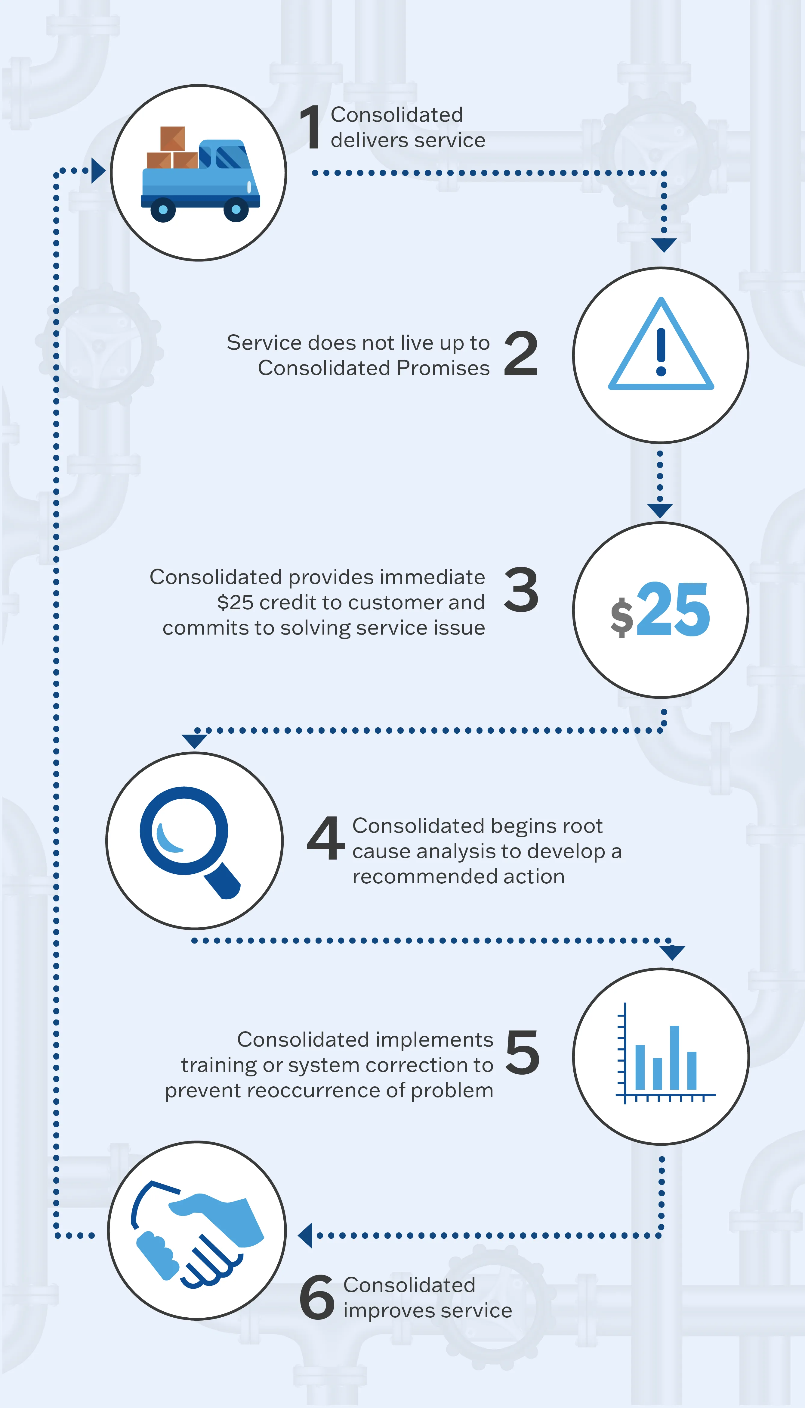 Our commitment to Deliver on the Promise is about striving for excellence, and recognizing it takes continuous improvement to do so. In fact, every time we issue a $25 Service Guarantee, we also begin an internal discovery process to determine why we missed our mark. Every time. Deliver on the Promise makes us better partners by simultaneously maintaining standards of excellence while also learning how to improve our service.